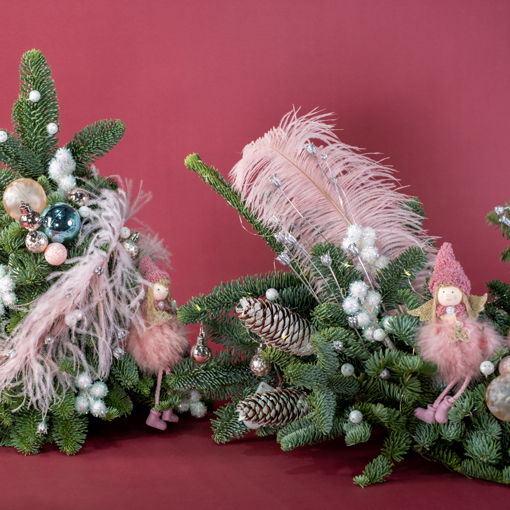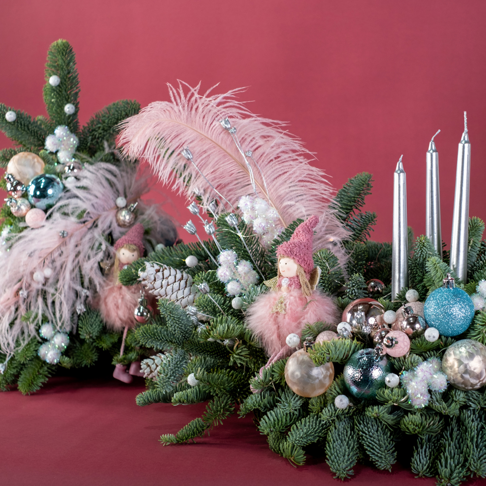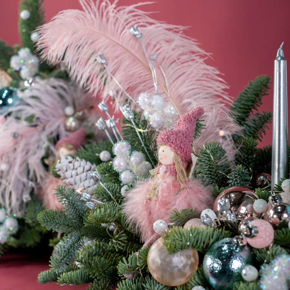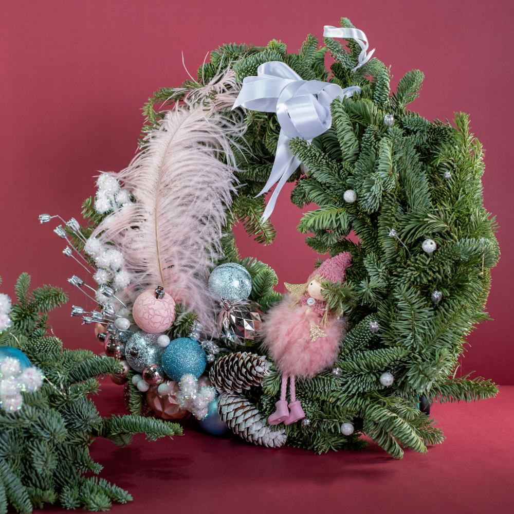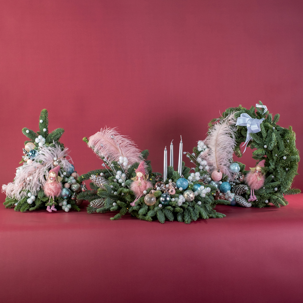 В коллекцию №1 входят следующие композиции: 1. "Сказочный Ангел", 2. Ёлка "Девочка-Ангел", 3. Венок "Снежный Ангел". Состав композиций: нобилис, ёлочные украшения, оазис, ленты, перья, фигурки Ангелочка