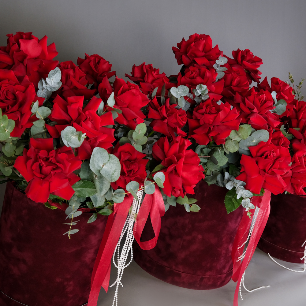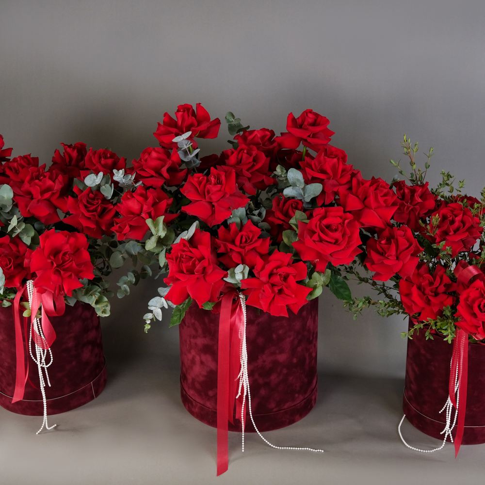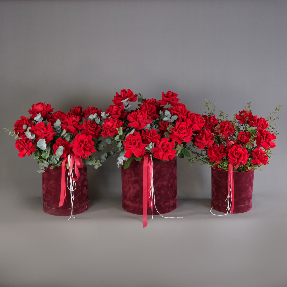 Композиция в шляпной коробке «Роскошь» S Композиция в шляпной коробке «Роскошь» М Композиция в шляпной коробке «Роскошь» L