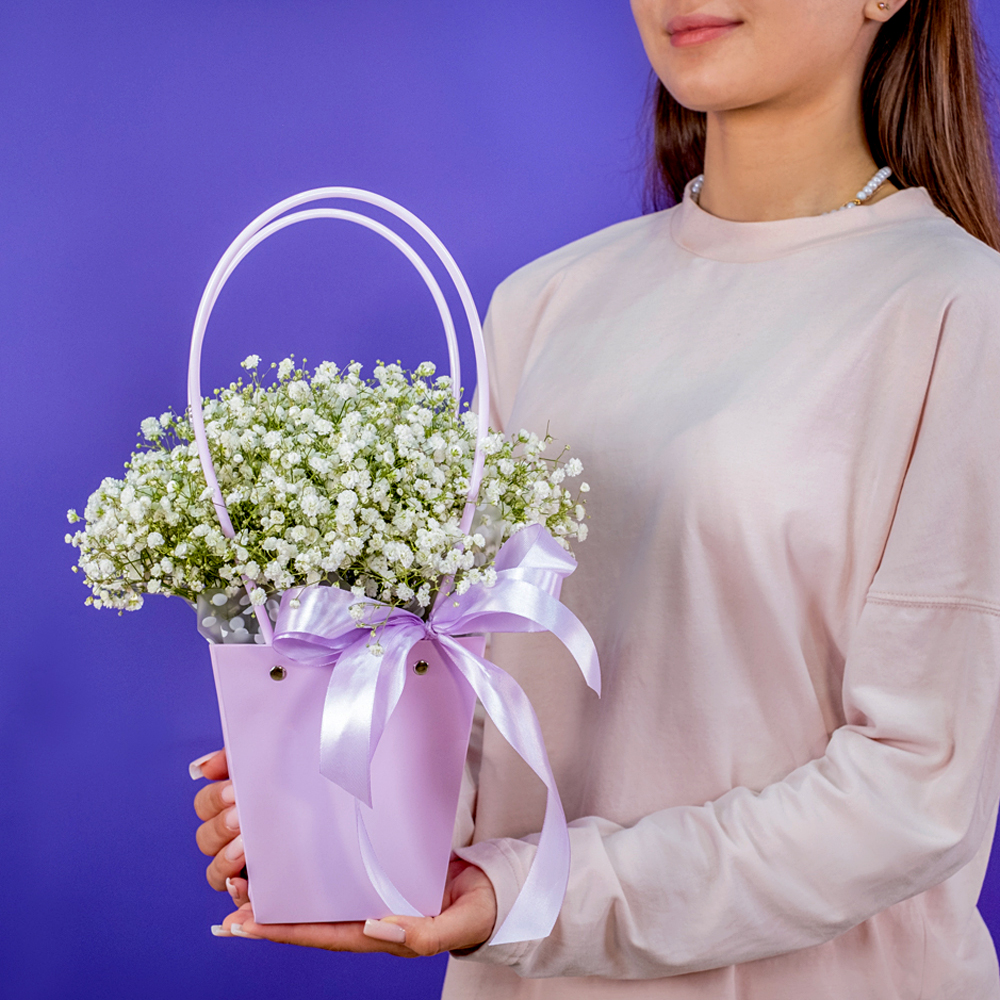 Эта композиция с легкостью подарит всем вокруг улыбку и весеннее настроение, согревая все вокруг своим видом. Сумочка может незначительно отличаться.