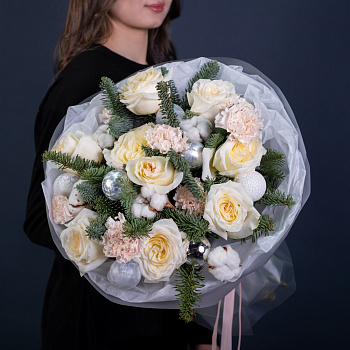 Упаковка может незначительно отличаться. Высота композиции - 25 см, ширина - 25 см