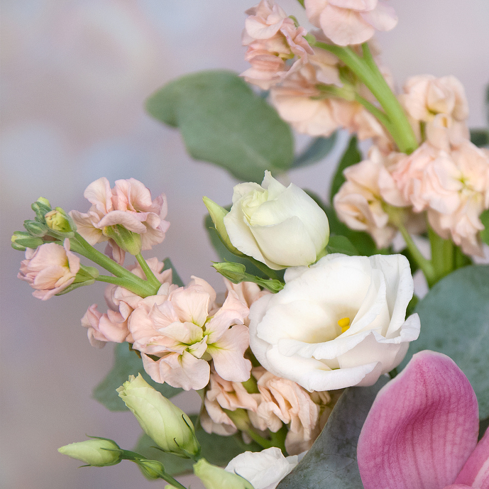 Спасибо флористам за такую нежную и красивую композицию. Мама любит любые цветы, но орхидеи, эустомы и розы в особенности. А здесь все в комплекте, да еще и с дополнением разным)) От моего подарка была в восторге!