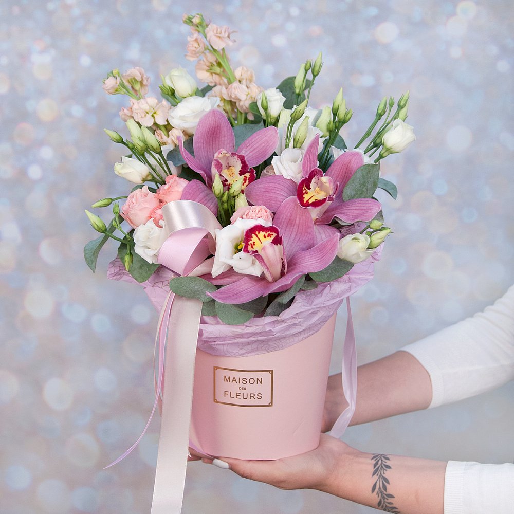 Цветы в коробке - отличный формат для подарка. Букет очень нежный и аккуратный. Цветовая гамма очень понравилась.
