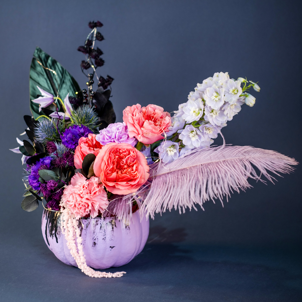 Оригинальные композиции в тыкве доступны для покупки на заказ.