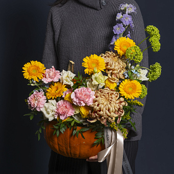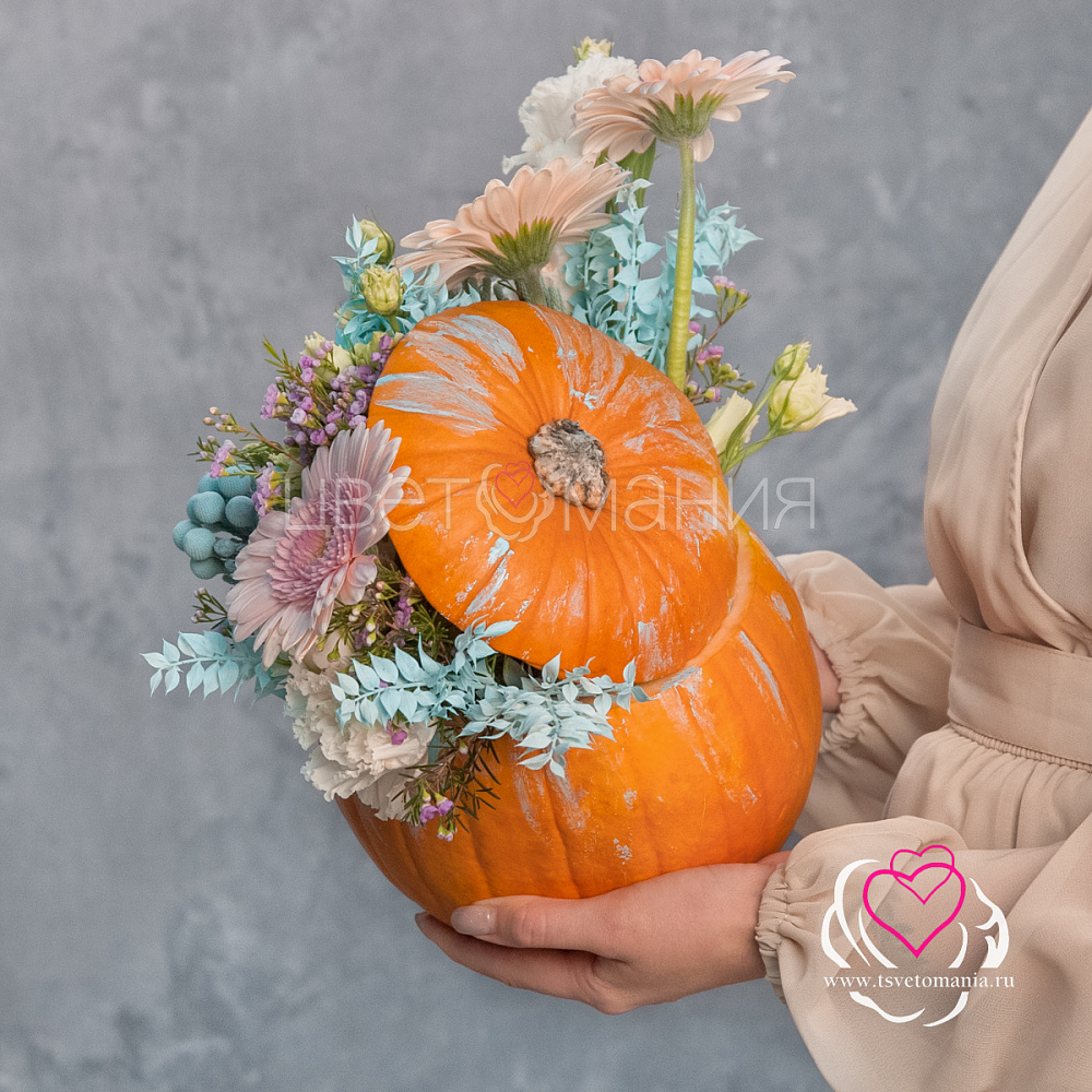 Оригинальные композиции в тыкве доступны для покупки на заказ.