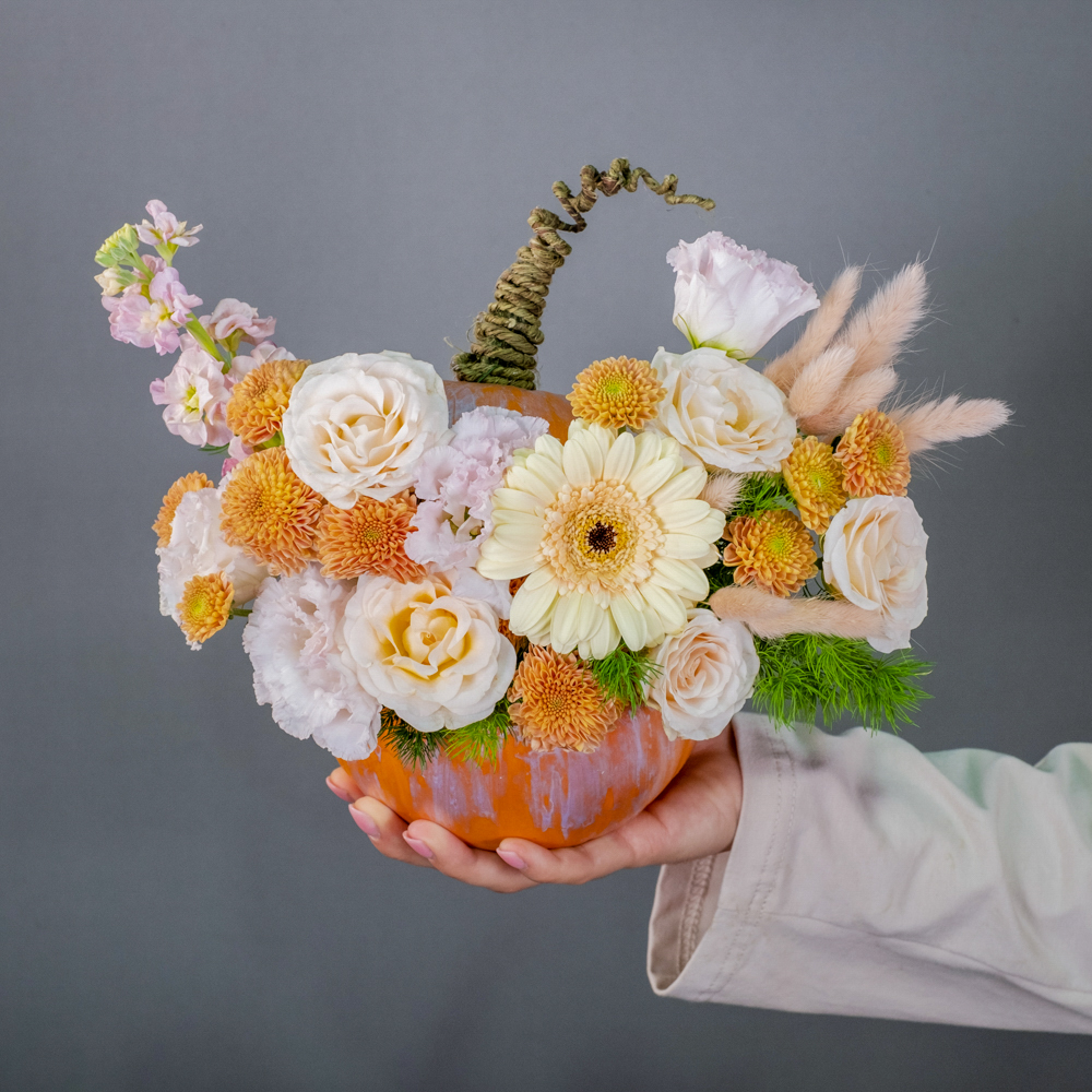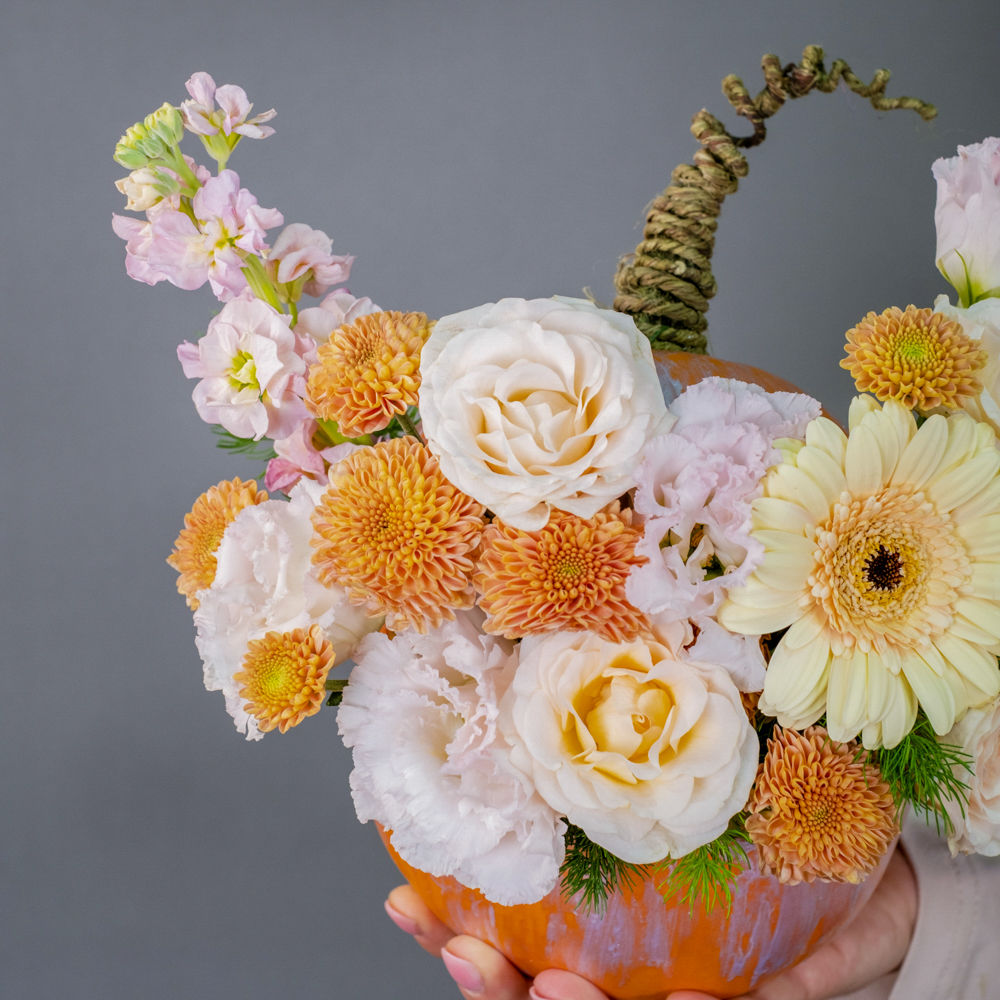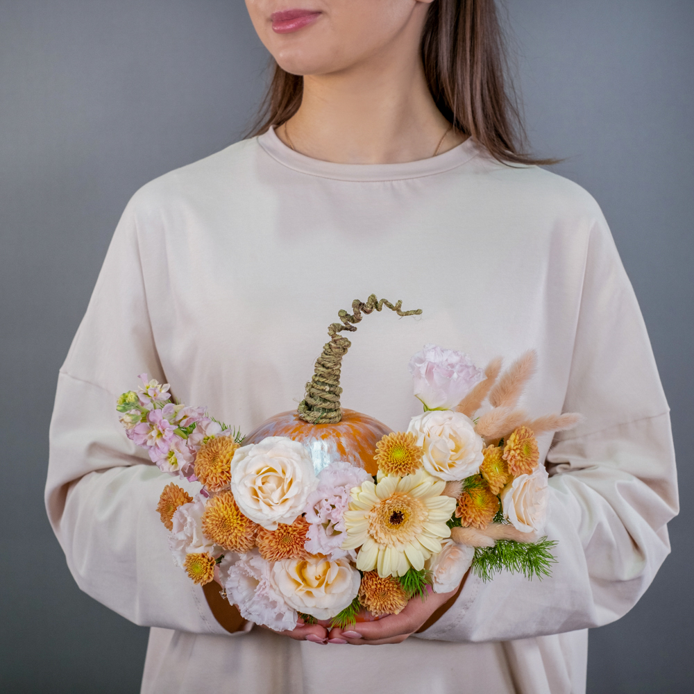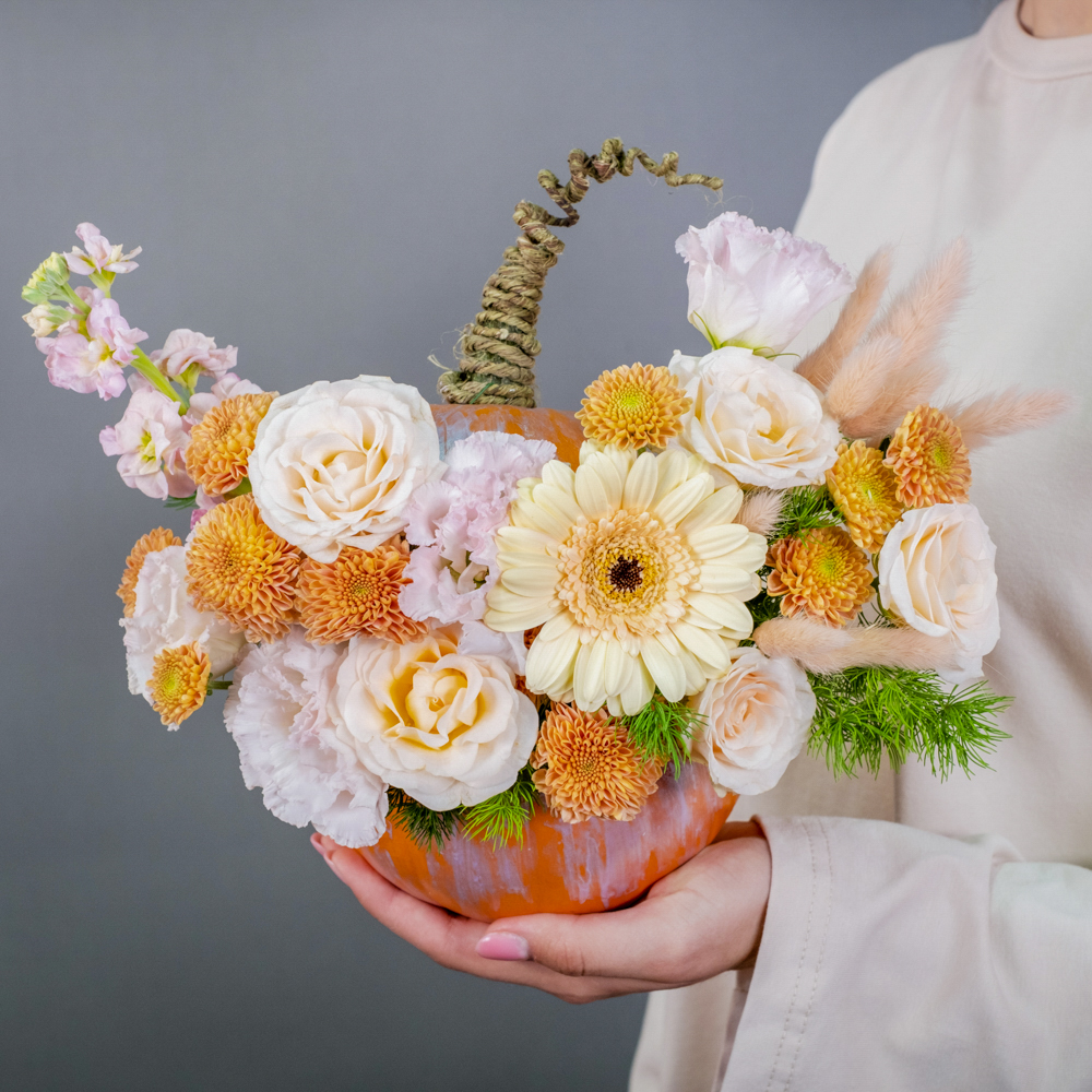 Оригинальные композиции в тыкве доступны для покупки на заказ.