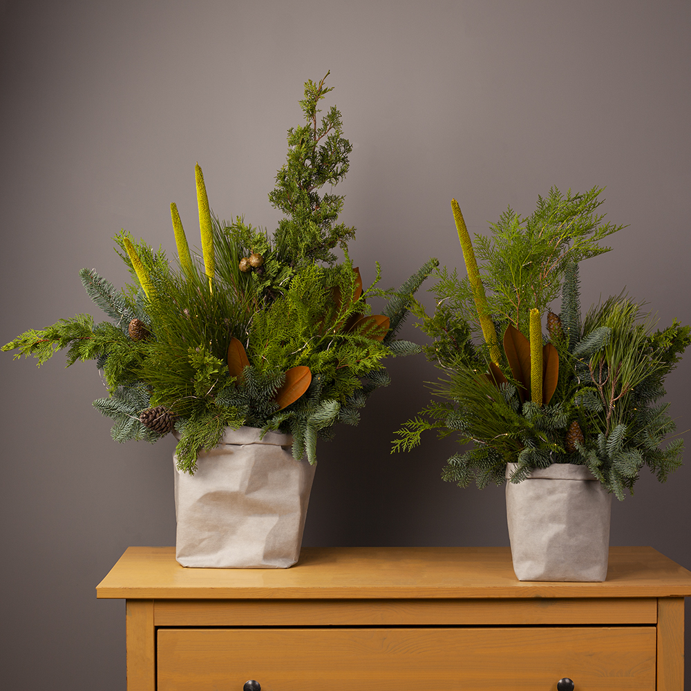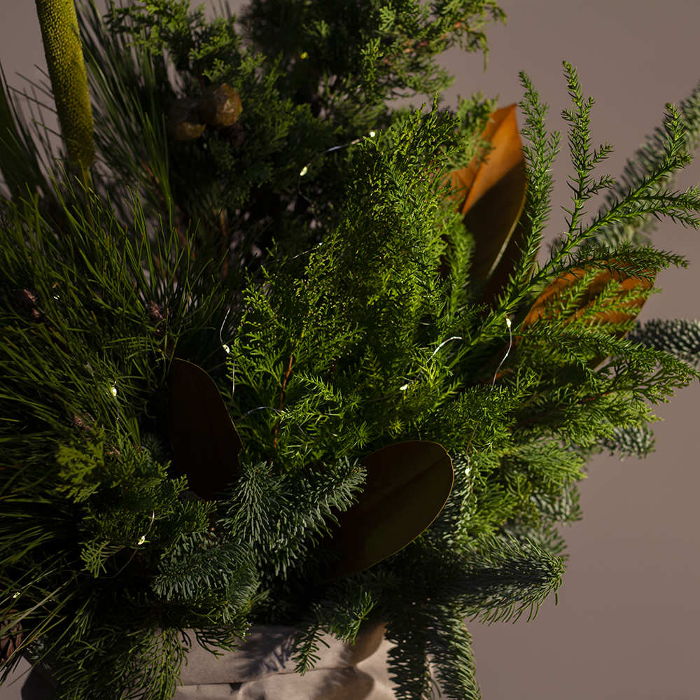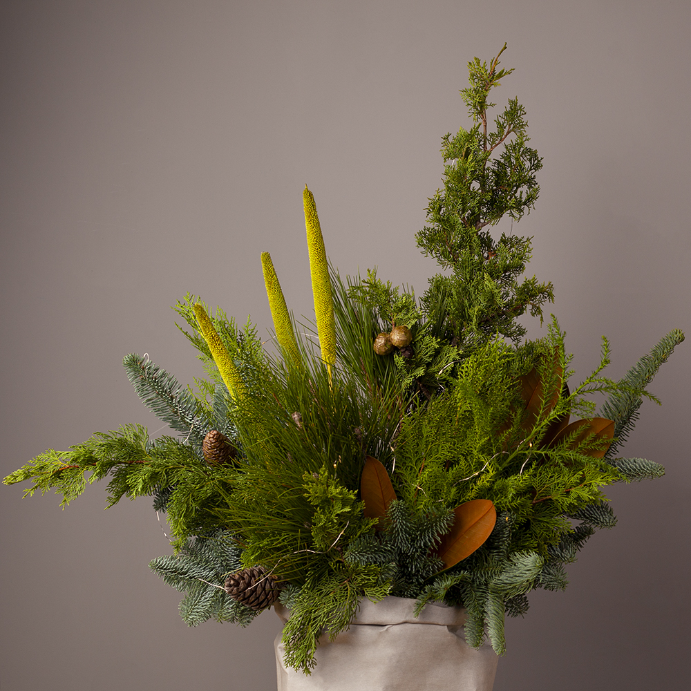 камыш крашенный 3, кипарис 3, магнолия 2, мерешка 2, нобилис 3, сосна 2, туя 4, оазис 6, коробка под композицию