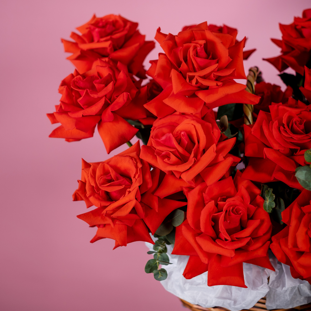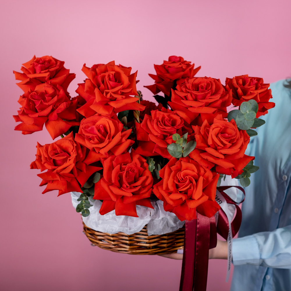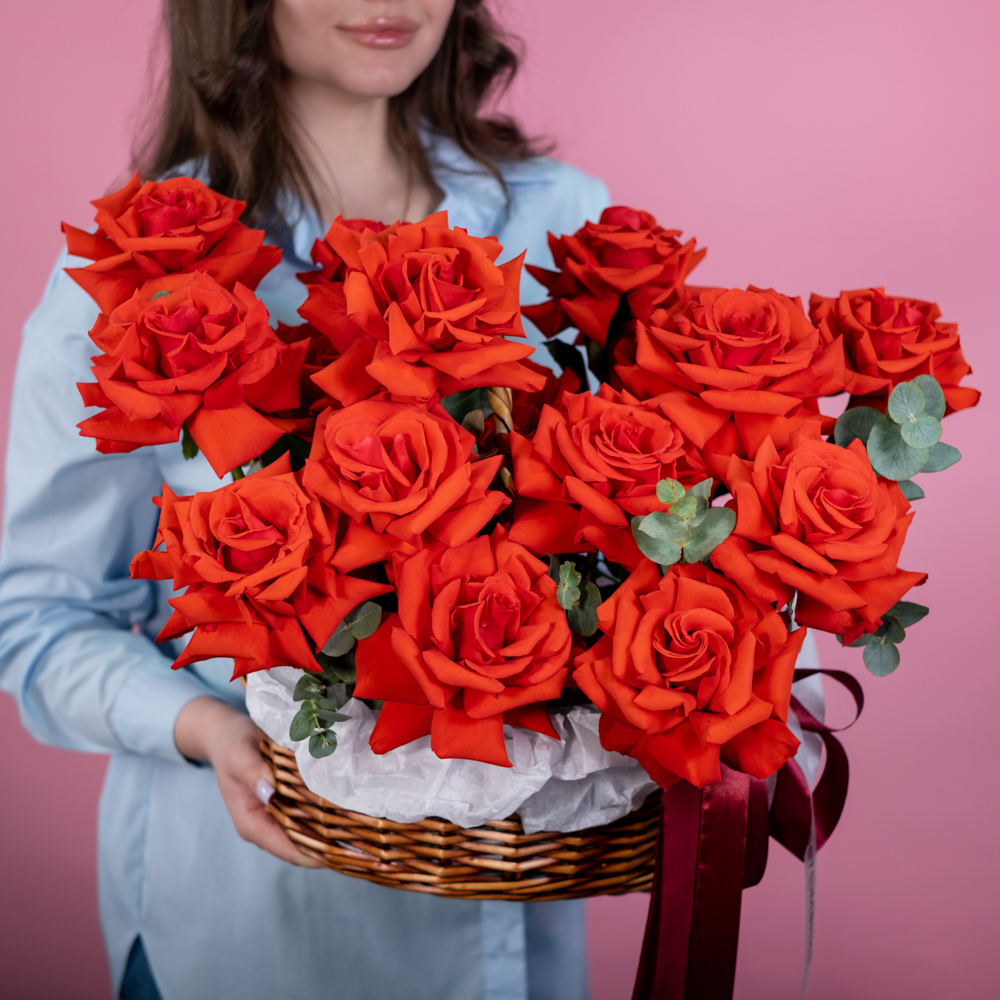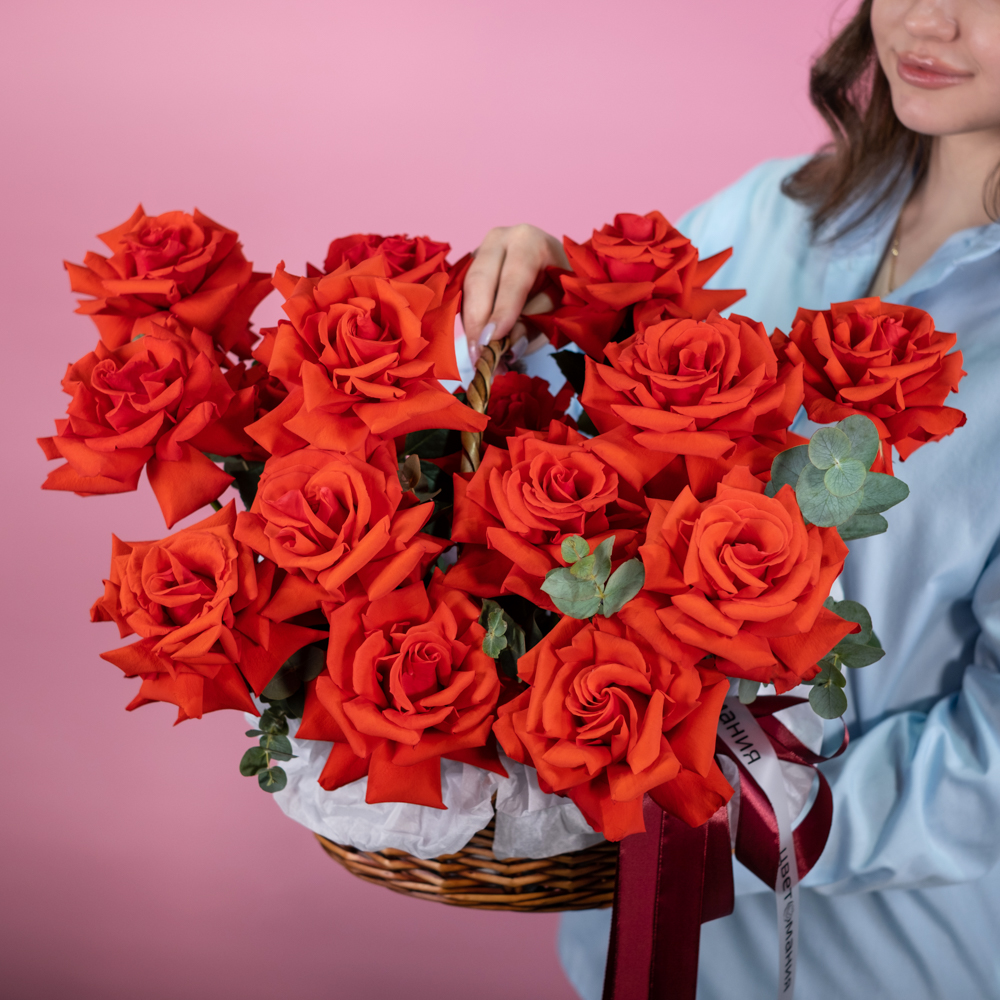 французская роза 15, эвкалипт 2, корзина, оазис 3