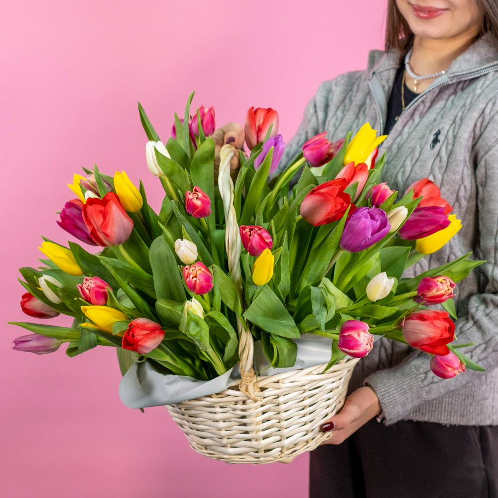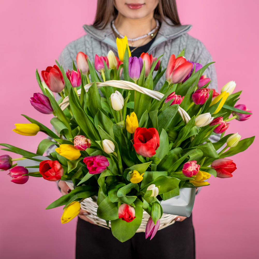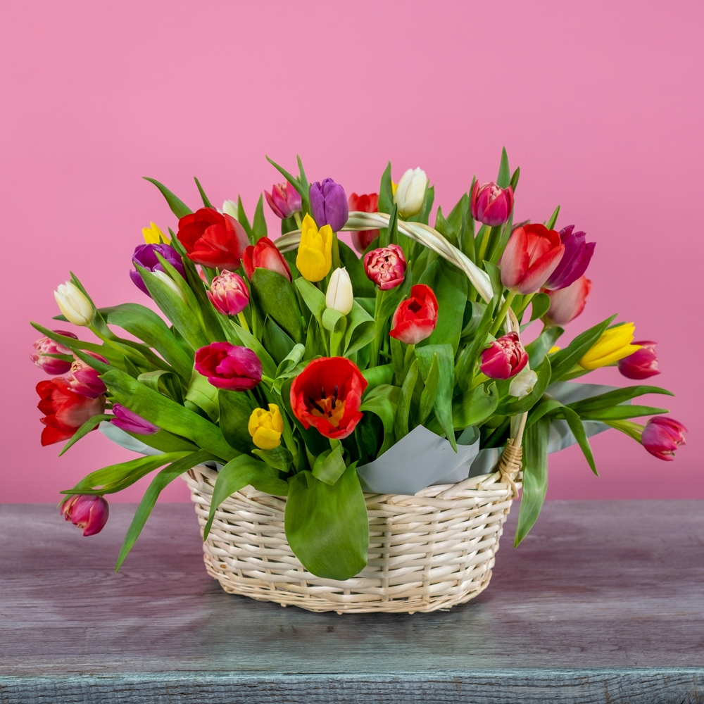 тюльпан 51, корзина, оазис, пленка