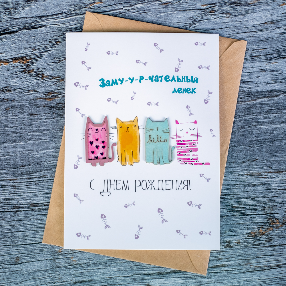 Поздравительная открытка станет отличным дополнением к вашему подарку.