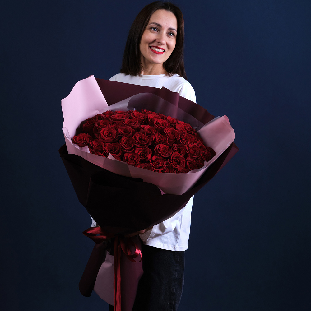 роза Эквадор 70 см 51, лента, упаковка, шар сердце 9.