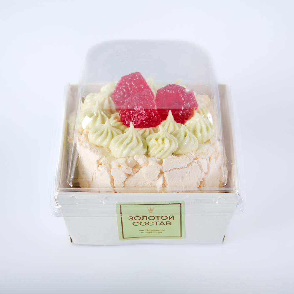 Безе: сахар- песок, белок яичный, крахмал кукурузный, регулятор кислотности лимонная кислота, соль. Крем: сливки молочные 33% (сливки нормализованные), сыр сливочно-творожный (творог (нормализованное пастеризованное молоко, бактериальная закваска, молокосвертывающий фермент микробного происхождения), малина с/м, сгущенное молоко цельное ( молоко, сахар), фисташковая начинка (ядра орехов фисташки обжаренные, ядра орехов миндаля обжаренные, сахар-песок, загуститель пектин, ароматизатор натуральный ваниль. Украшение: масло сливочное несоленое 82,5% (пастеризованные сливки), сгущенное молоко цельное (молоко, сахар), ароматизатор натуральный ваниль.