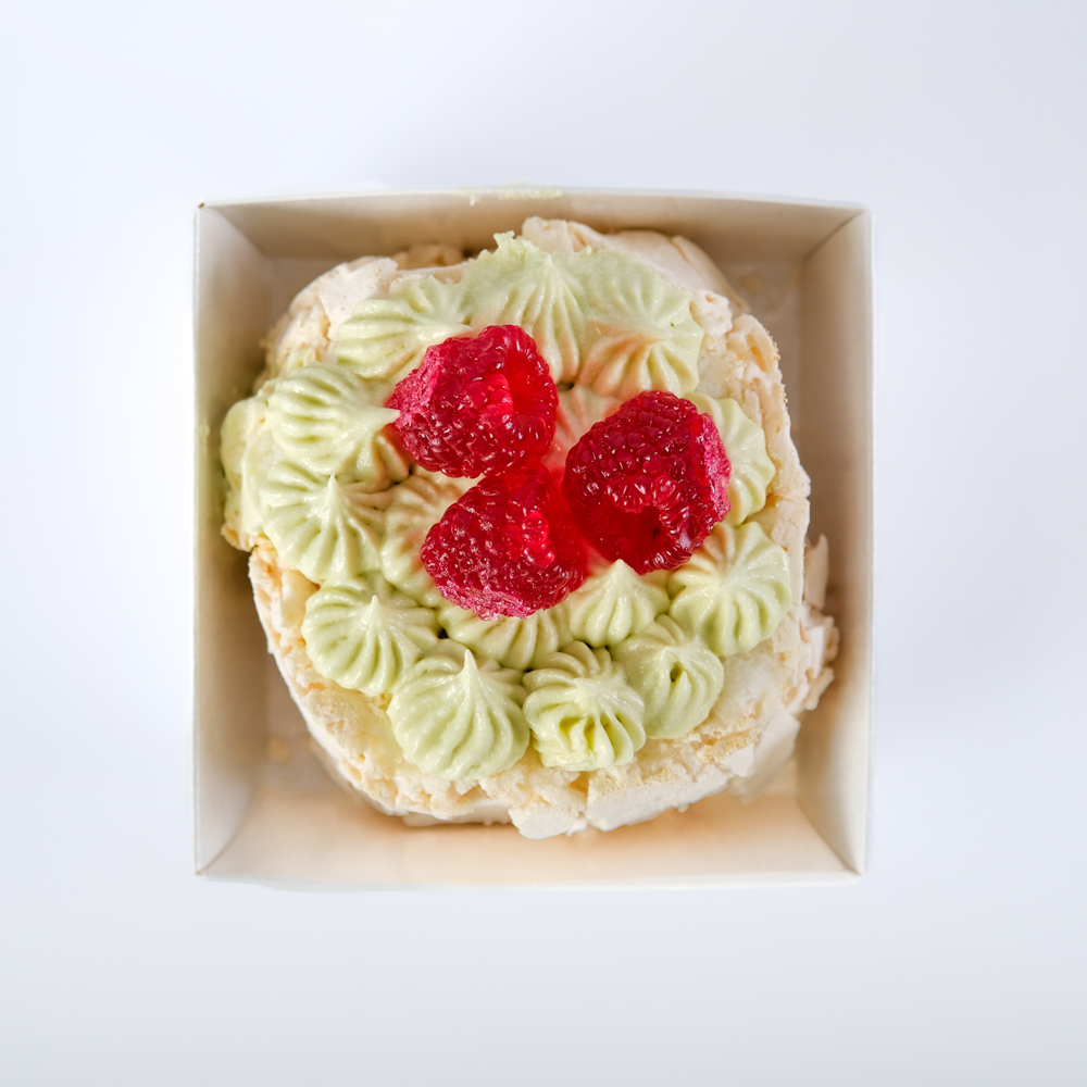 Ваш любимый десерт стал еще удобнее! Мы сохранили идеальную рецептуру нашего легендарного меренгового рулета, чтобы вы могли наслаждаться им в любое время и в любом месте. Теперь классическое сочетание хрустящего безе, нежной фисташки и сочной малины доступно в индивидуальном порционном исполнении.
