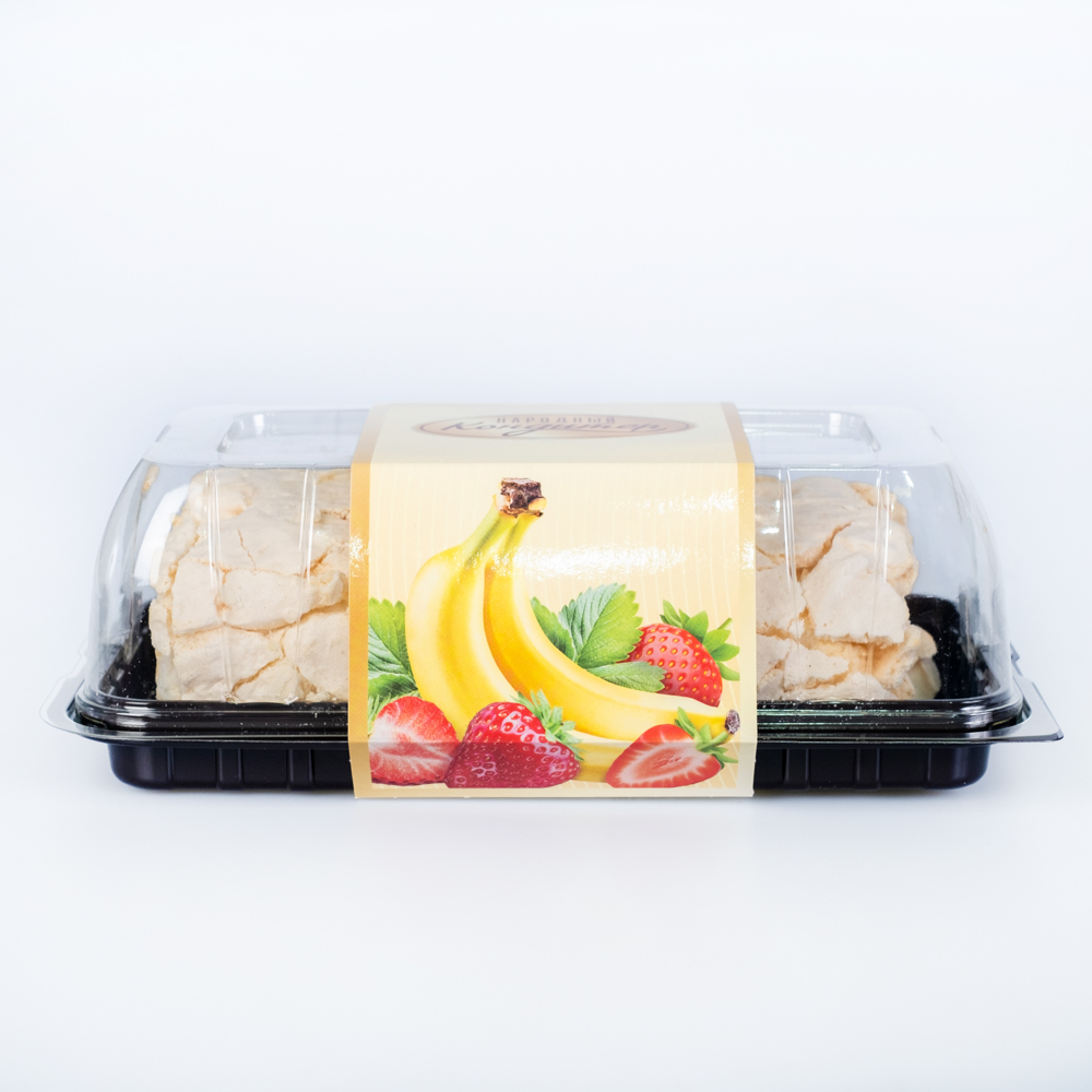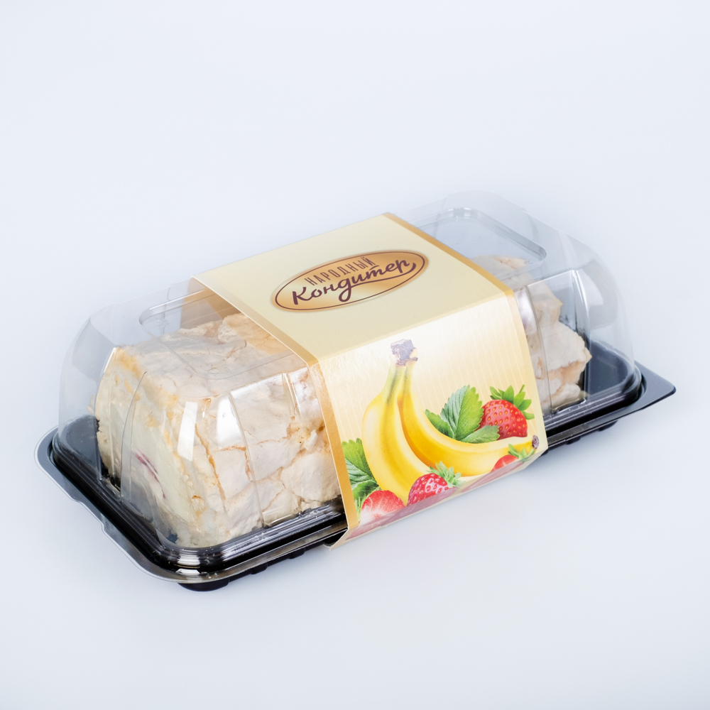 Рулет из воздушного, лёгкого хрустящего безе с прослойкой из нежного крема на основе клубники и банана.