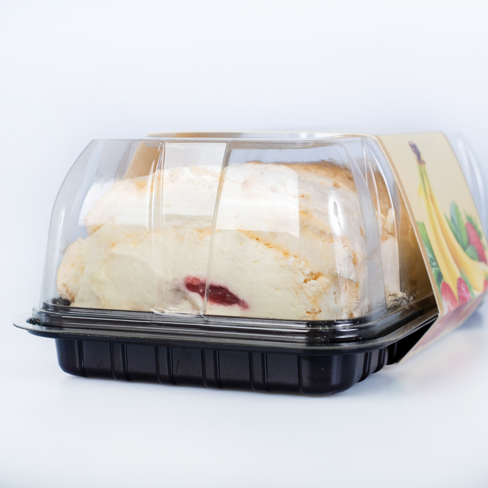 Состав: сахар-песок, яйцо куриное, крахмал кукурузный, лимонная кислота, соль, сливки молочные 33%, сыр сливочно-творожный, сгущенное молоко, масло сливочное несоленое 82,5%, паста десертная банан, сахар, ванилин, джем клубничный.