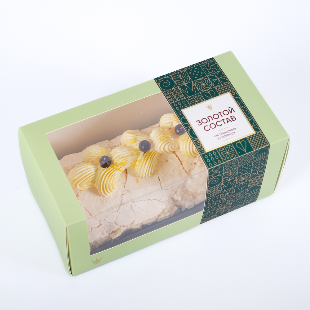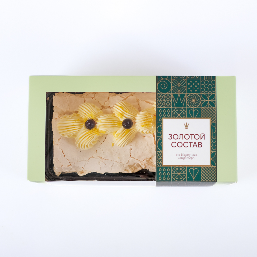 Безе: сахар- песок, белок яичный, крахмал кукурузный, регулятор кислотности лимонная кислота, соль. Крем: сливки молочные 33% (сливки нормализованные), сыр сливочно-творожный (творог (нормализованное пастеризованное молоко, бактериальная закваска, молокосвертывающий фермент микробного происхождения), сгущенное молоко цельное (молоко, сахар), джем манго- маракуйя (пюре манго (манго, сахар-песок), пюре маракуйи (маракуйя, сахар-песок), загуститель пектин, ароматизатор натуральный ваниль. Украшение: масло сливочное несоленое 82,5% (пастеризованные сливки), сгущенное молоко цельное (молоко, сахар), ароматизатор натуральный ваниль.
