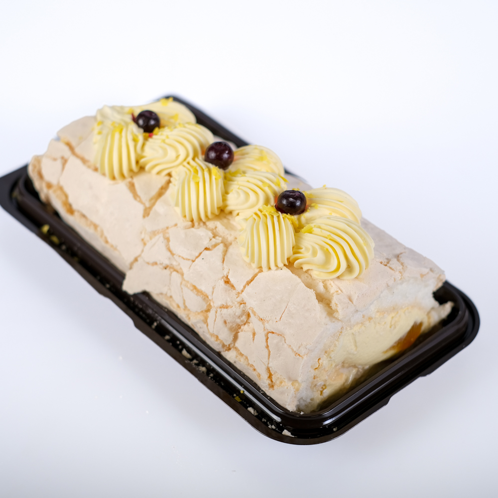 Рулет из воздушного, лёгкого хрустящего безе с прослойкой из нежного крема на основе манго и маракуйи.