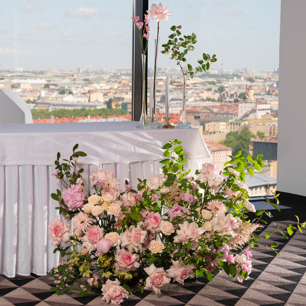 Компания "Цветомания" на рынке более 10 лет. Наш сервис предлагает качественное цветочное сопровождение вашего торжества. Свежие цветы от прямых поставщиков и креатив топ-флористов сделают ваш праздник по-настоящему красивым и запоминающимся. Воплотим любые идеи в реальность! Указана минимальная стоимость свадебного оформления (президиум, 1 композиция на гостевой стол), рассчитывается в зависимости от комплектации заказа. Декор (вазы, кашпо, подсвечники) не входит в указанную стоимость. В нашем интернет-магазине большой ассортимент декора, есть возможность выбрать на свой вкус и взять в аренду на мероприятие за отдельную плату. Заказ можно оформить не позднее, чем за 2 недели до даты мероприятия.
