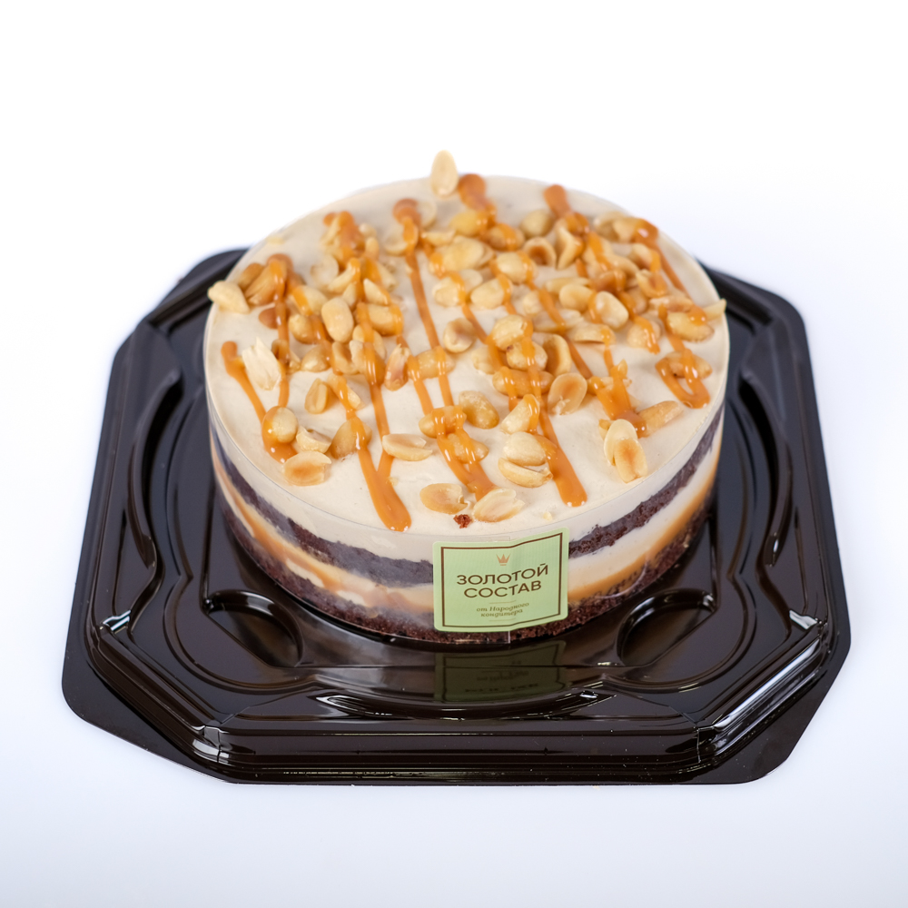 Авторский десерт «С арахисом» от участницы шоу «Кондитер» Арины Шипиловой, г. Новосибирск. Воздушный шоколадный бисквит, нежный сливочный крем с цельным варёным сгущенным молоком. Прослойка из обжаренного арахиса и нежной карамели.