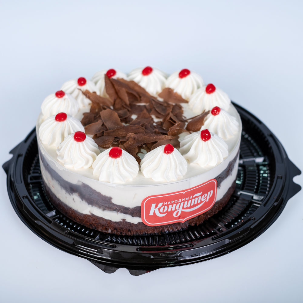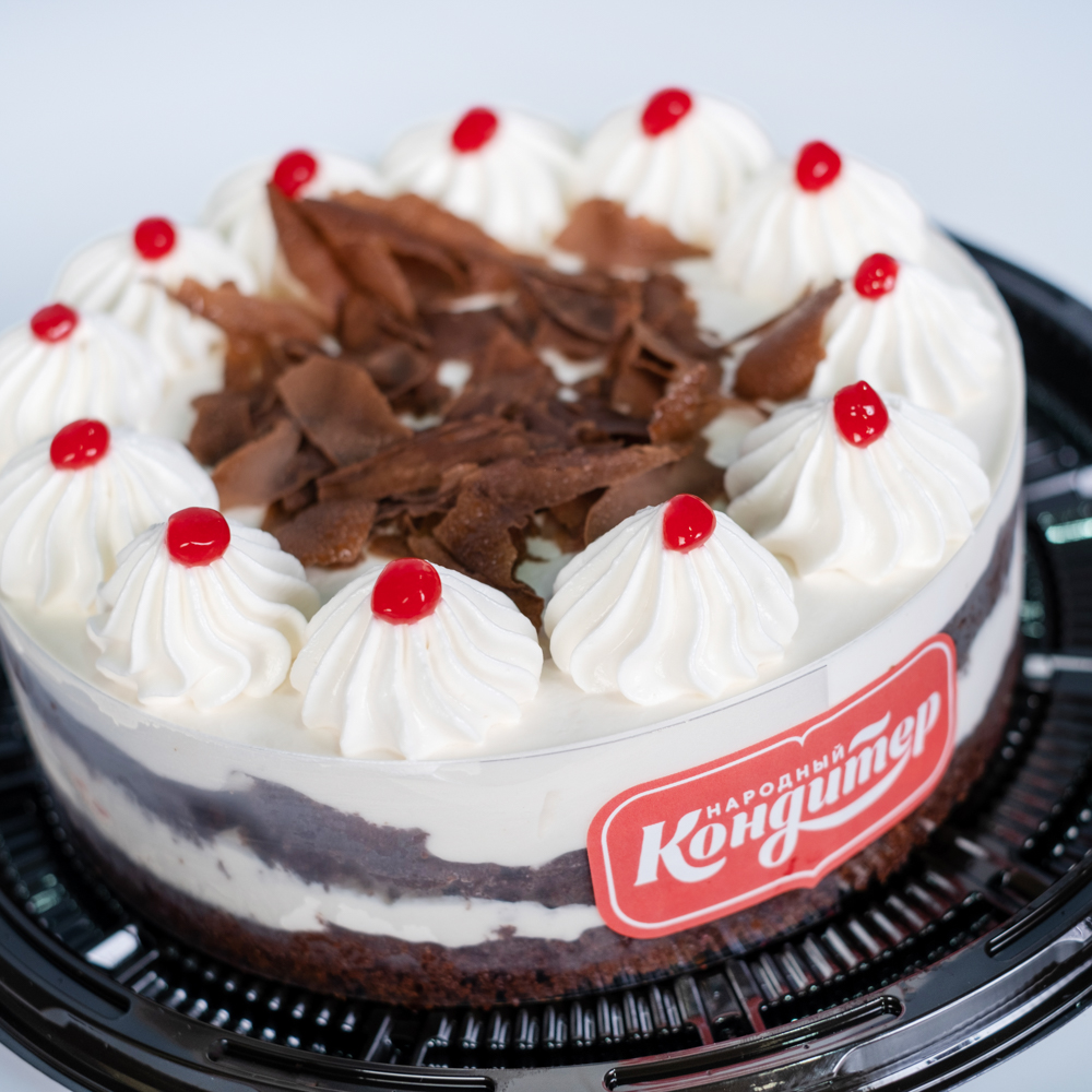 Крем: сливки молочные 33% ( сливки нормализованные), сыр Маскарпоне ( молоко, сливки молочные 33%, регулятор кислотности лимонная кислота), молоко питьевое( молоко нормализованное), сгущенное молоко цельное ( молоко, сахар), ароматизатор ванилин, консервант сорбиновая кислота; вишня с/м; бисквит: мука пшеничная в/с, сахар- песок, яйцо куриное, масло подсолнечное рафинированное, какао- порошок, крахмал пшеничный, разрыхлитель сода пищевая( гидрокарбонат натрия), сыворотка молочная сухая, соль, маргарин( масла дезодорированные рафинированные( пальмовое, подсолнечное), вода, эмульгатор (моноглицерид жирных кислот) , регулятор кислотности лимонная кислота, краситель (бета- каратин), сахар); сок вишневый, желатин, шоколад темный (какао тертое, сахар, какао- масло).
