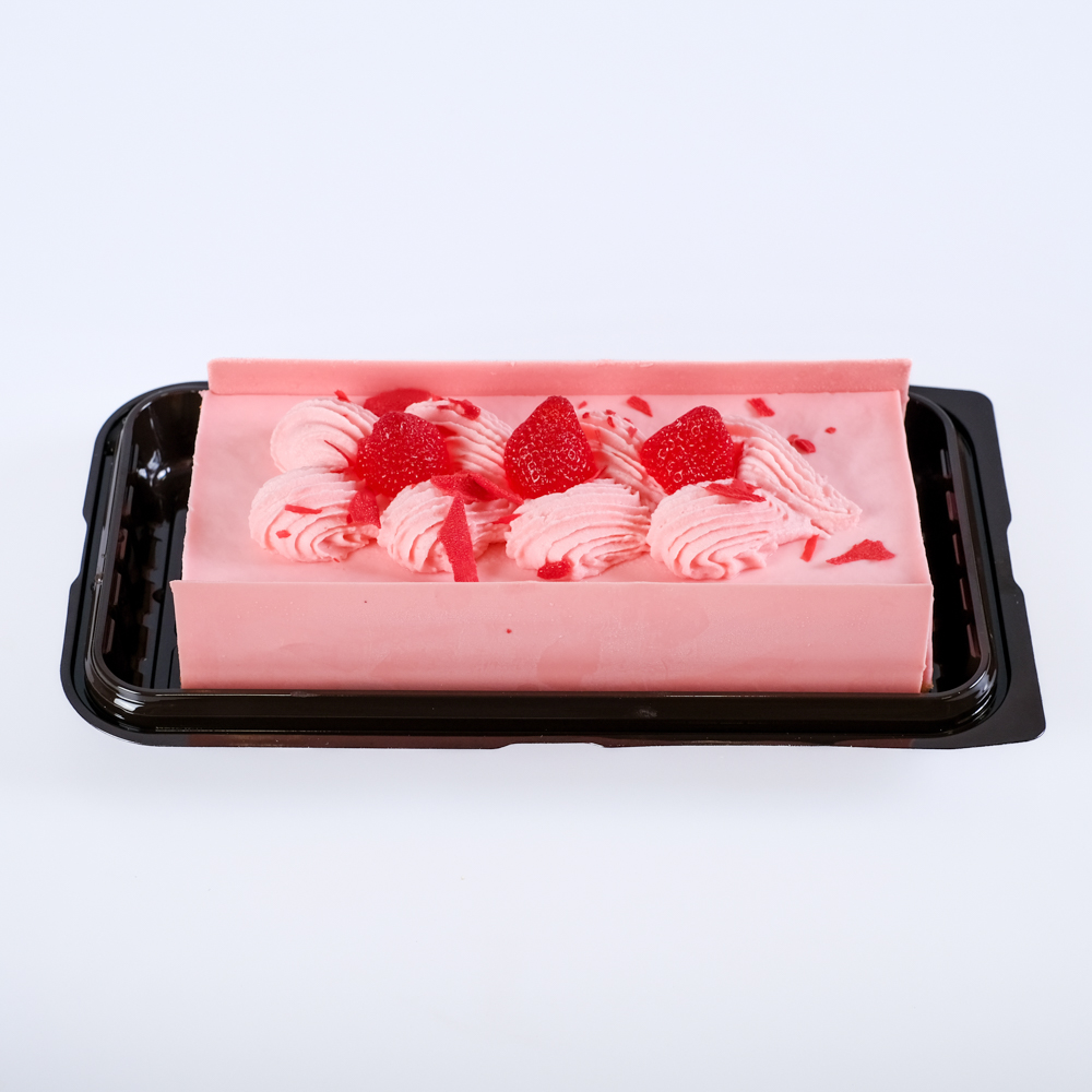 Состав: мука пшеничная в/с, сахар-песок, яйцо куриное, масло подсолнечное, шоколад молочный, молоко (молоко нормализованное), сливки молочные 33% (сливки нормализованные), сыр сливочно-творожный (творог (нормализованное пастеризованное молоко, бактериальная закваска, молокосвертывающий фермент микробного происхождения), желатин, клубника с/м, пектин. Украшение: пюре Клубника, глазурь шоколадная белая, краситель Кармин.