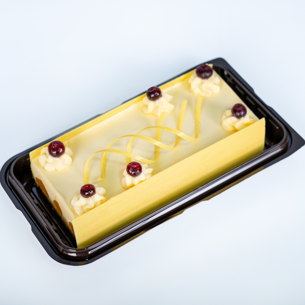 мука пшеничная в/с, сахар-песок, яйцо куриное, масло подсолнечное, шоколад молочный, молоко, сливки молочные 33%, сыр сливочно-творожный, желатин, пюре манго, пюре маракуйя, пектин. Украшение: пюре черная смородина, глазурь шоколадная белая, краситель желтый Куркумин.