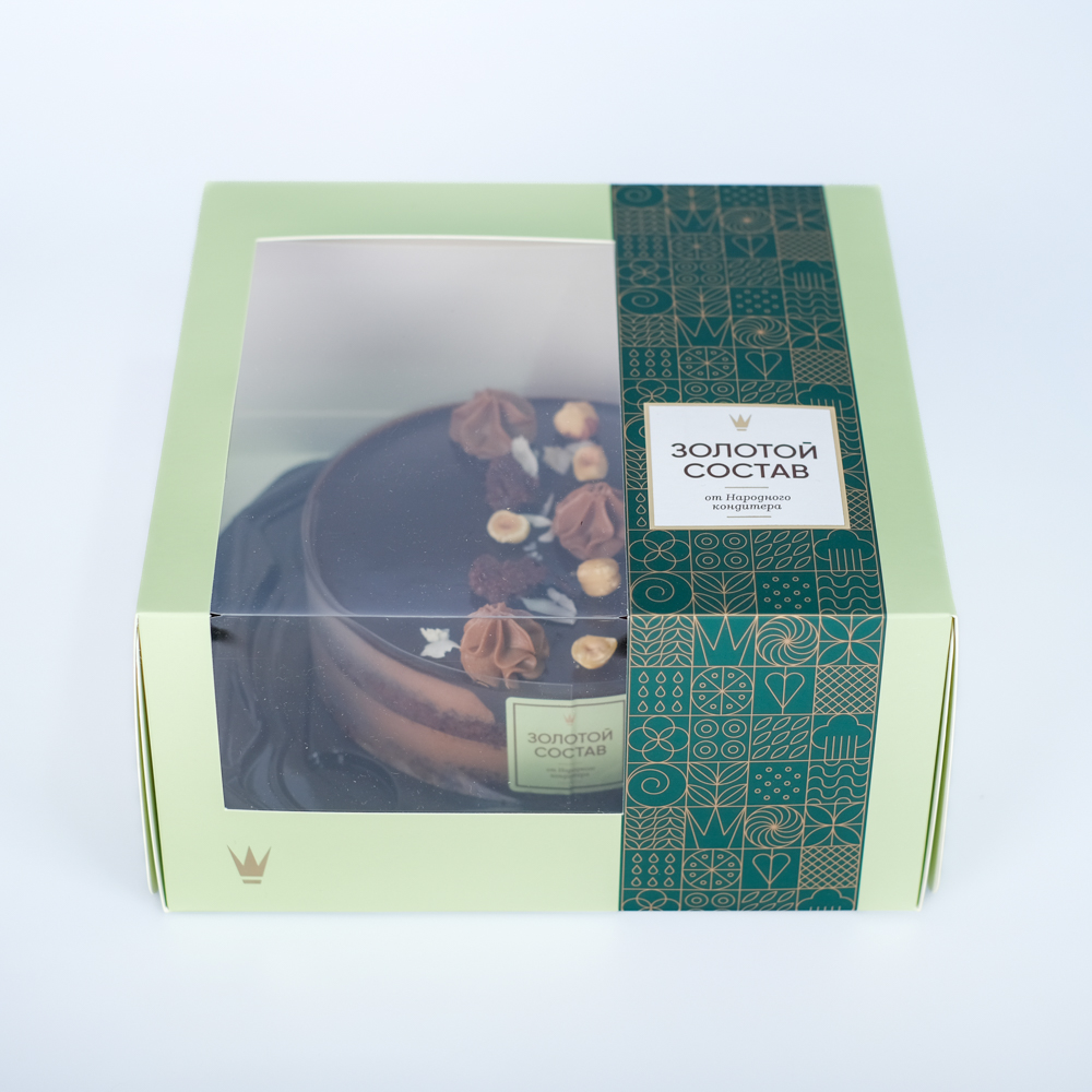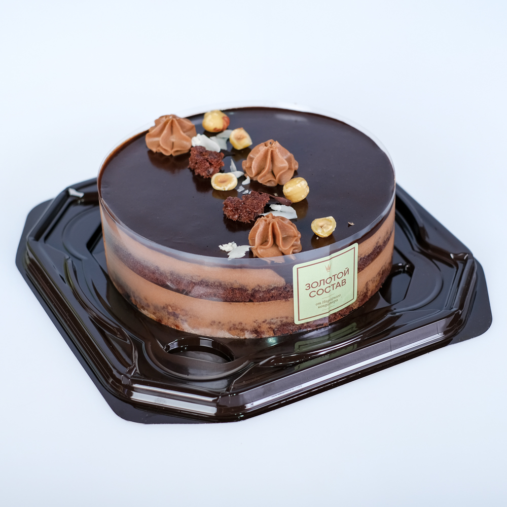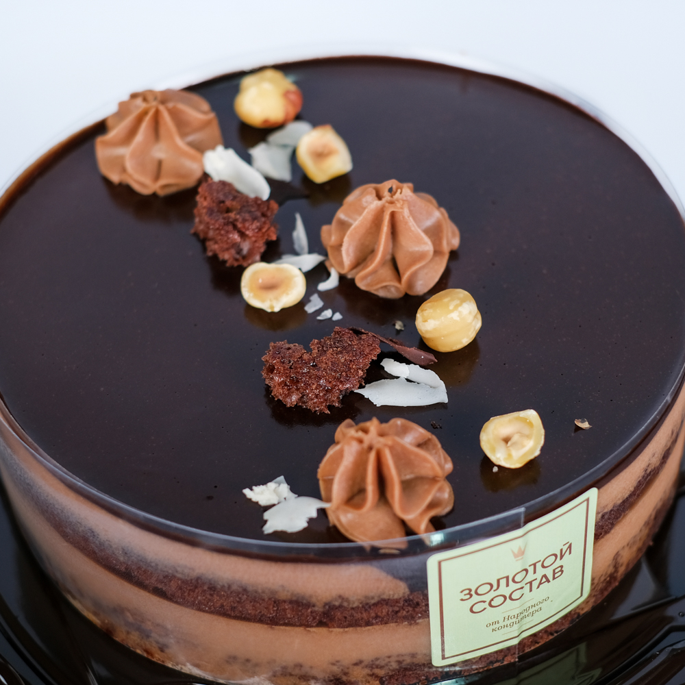 Ореховый торт с насыщенным шоколадным вкусом. В его основе — нежный бисквит с какао, мусс на основе молочного шоколада, ванильный мусс и ореховое пралине с ярким вкусом фундука.