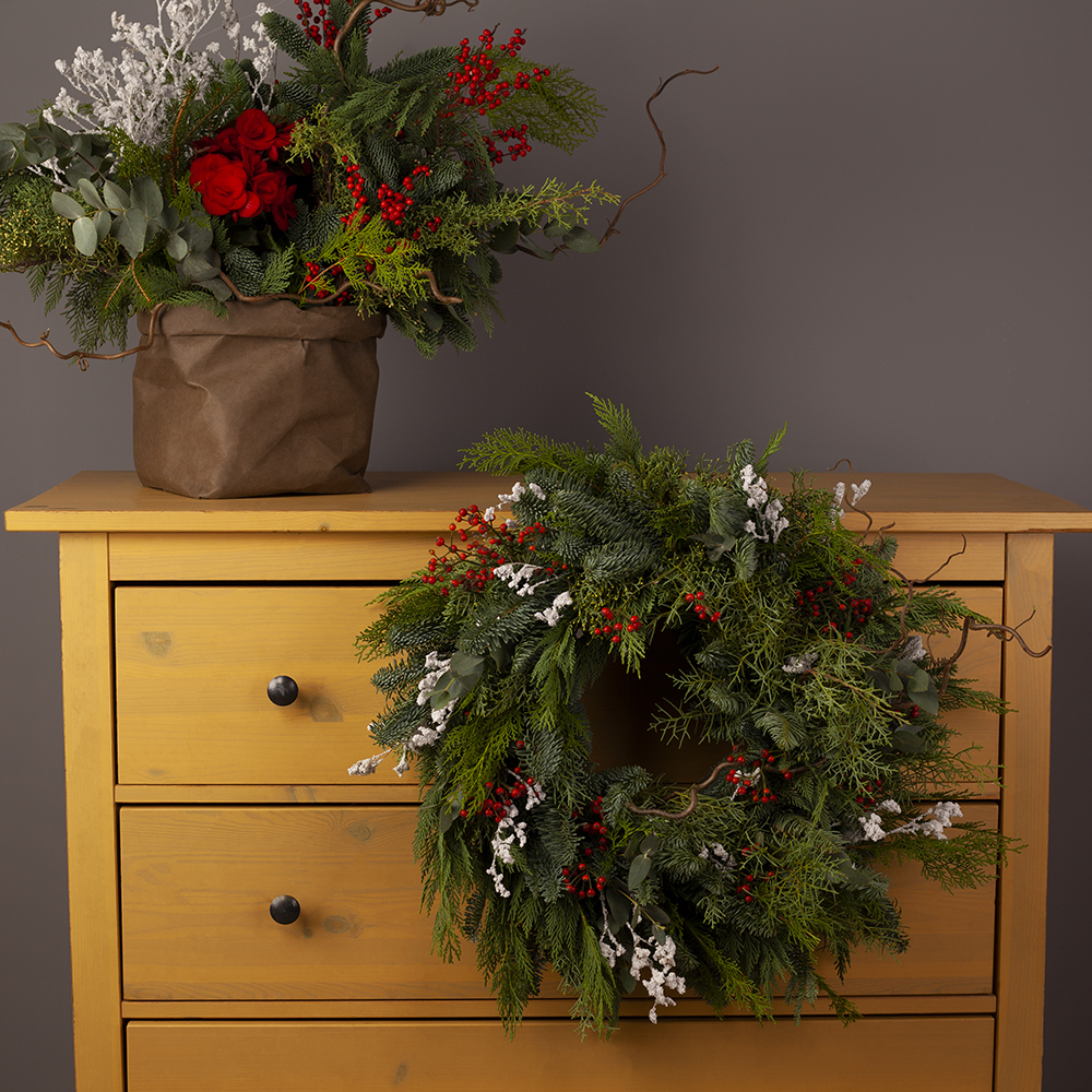 кипарис 3, корилиус 2, нобилис 6, сухоцветы 3, туя 9, шиповник 4, заготовка для венка