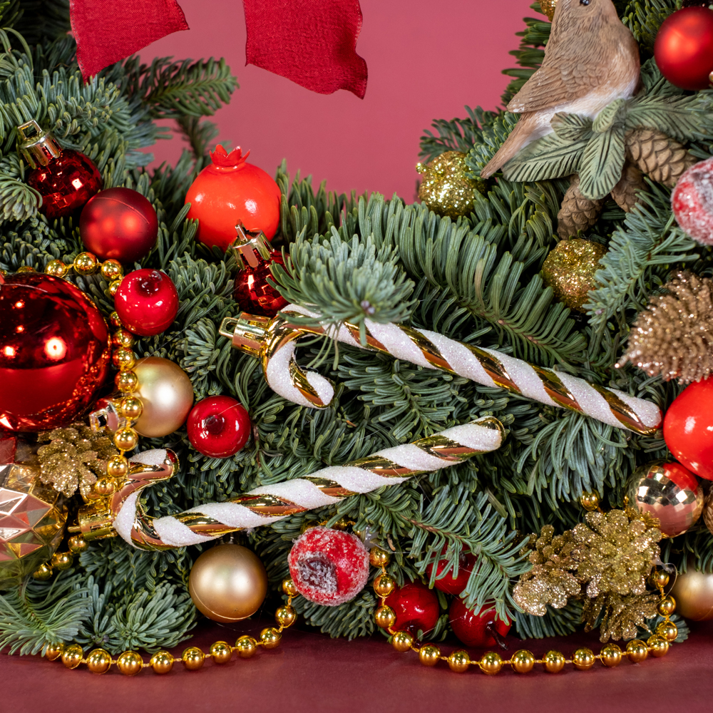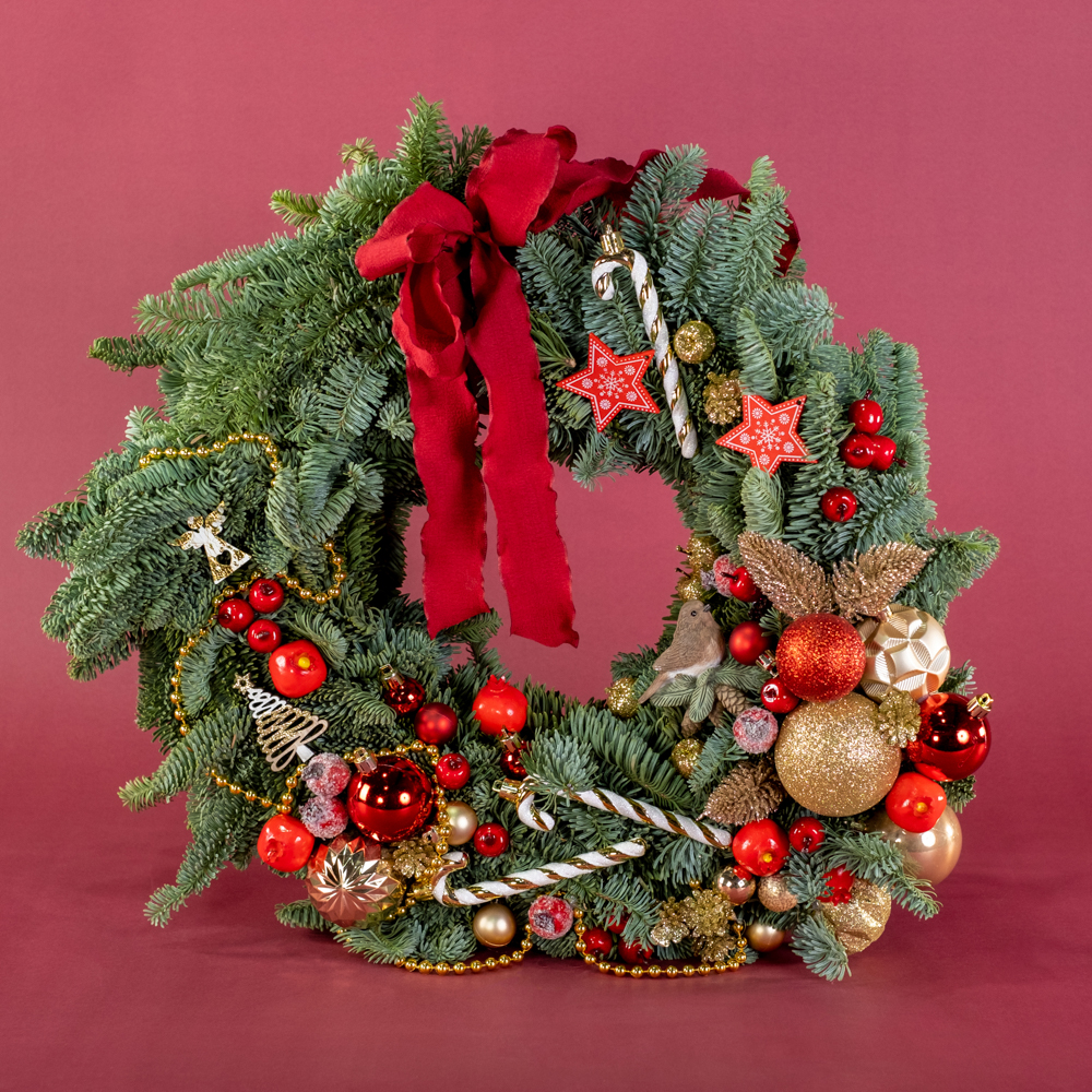 Рождественский венок в подарок близким и для украшения праздничного интерьера. Упаковка может незначительно отличаться. Высота композиции - 45 см, ширина - 45 см